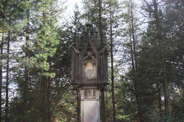 Znajomy myśliwy Tadeusz Swaryczewski zaprowadził mnie do niezwykłego monumentu schowanego głęboko wśród lasów w okolicach Rud Raciborskich na terenie pożarzyska sprzed ponad 20 laty. Kiedyś było to pewnie bardzo urokliwe miejsce, najprawdopodobniej polana, na której wzniesiono 123 lata temu bardzo bogaty piaskowcowy obelisk. Obecnie trudno odczytać intencje ofiarodawców, chociaż z dużą pewnością można się domyślać, że byli nimi właściciele Rud Raciborskich. Zawiera datę - 5 lipca 1890 oraz herb rodu Hohenlohe, do którego należała rodzina von Ratibor. W owym czasie Księciem (Herzog von Ratibor) był Wiktor I Maurycy. Budowla ta, bo trudno aktualnie nazwać ją kapliczką bądź krzyżem, gdyż nie można na niej dostrzec żadnych znaków sakralnych, musiała upamiętniać jakieś zdarzenie. Wydaje się, że dość dobrze zachowana z piekła pożaru, dziś wyraźnie czeka na swoje „odnalezienie”. /BN/